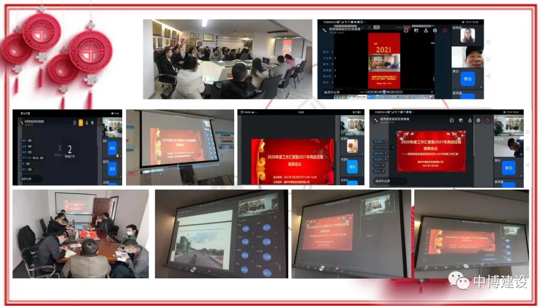 公司2020年度工作汇报暨2021年再启新征程的视频会议于2021年1月29日在公司主会议室召开。参会人员含各分公司成员、办公室全体成员及各项目部全体成员。通过视频会议交流的形式,各部门负责人简要汇报了2020年度工作情况;全面回顾公司2020年工作成果;并分析新时期新形式新任务、研究部署2021年的新目标、新战略。最后通过视频传达了公司对全体成员的新年祝福。